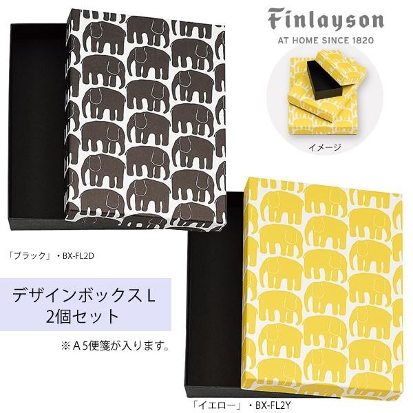 1969年フィンレイソンと芸術デザイン大学が共催したデザインコンペで、ライナ・コスケラが発表したデザイン。A5便箋が入ります。 製造国:日本 素材・材質:紙 商品サイズ:内寸:約175×235×35mm、外寸:約181×241×38mm セット内容:同色2個セット ※サプライヤー直送品  ご注文後3~4営業日後の出荷となります【商品名】Finlaysonフィンレイソン エレファンティ デザインボックス L 同色2個セット 「イエロー」・BX-FL2Y
