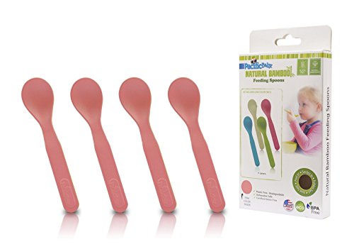 Pacific Baby All Natural Bamboo Baby Toddler Infant Plastic-Free Feeding Spoons, Light Pink, 4 Piece