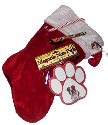 Bulldog Christmas Stocking Gift Set with Matching Ornament, Notepad & Pen & a Candy Cane