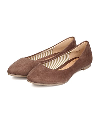 Betani FE12 Women Faux Suede Pointy Toe Ballerina Flat