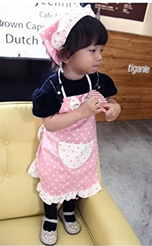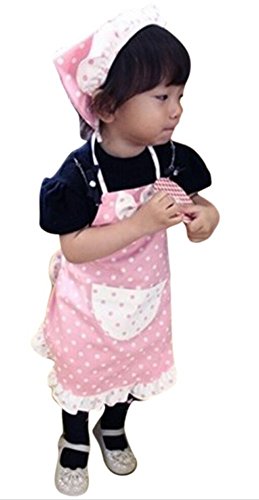 CRB Little Girls Toddler Chef Baker Apron Pocket Headscarf Outfit Set (4 to 5 Years Old, Pink)