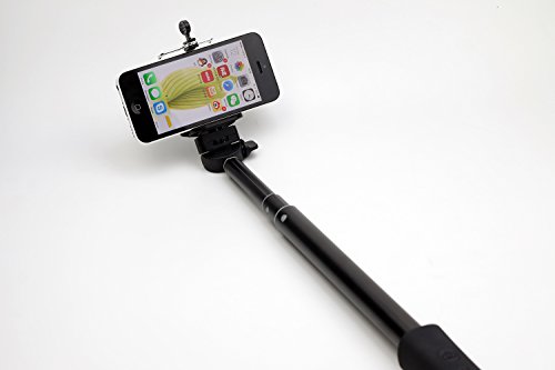 Monopod extends up to 40 inches, Adjustable ball-head-and-thumb screw locks for multiple angles with 180 degree position.