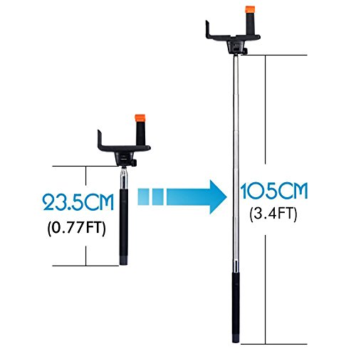 Extendable stick as long as 40inch, with adjustable holder it allows random ratation of shooting angle.
