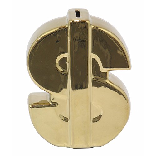 Studio : Benzara Publisher : Benzara Binding : Kitchen Product Description Bring a money bank and make a goal to fill it up. If you are a spendthrift then having a money bank is a great idea to save money. This is a very stylish and shiny money bank that can help you top save some money. It is very shiny in appearance and smooth in texture. This features a dollar sign in shiny Golden finish. You don't need to place this money bank inside your locked shelves you can also place this on table tops to beautify them. 0