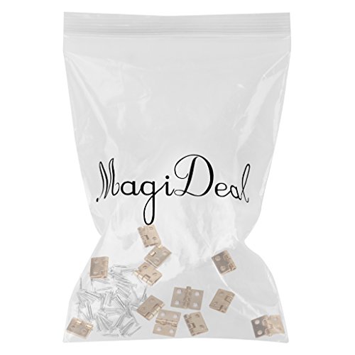 12pcs mini hinges with mini screws Designed for 1/12 dollhouse miniature furnitures, such as closets, cabinets, etc There are 4 mounting holes on each hinge Great for people who like DIY Size When Fully Opened (L x W): Approx. 10 x 8mm Screw Length: Approx. 5mm Color: Golden