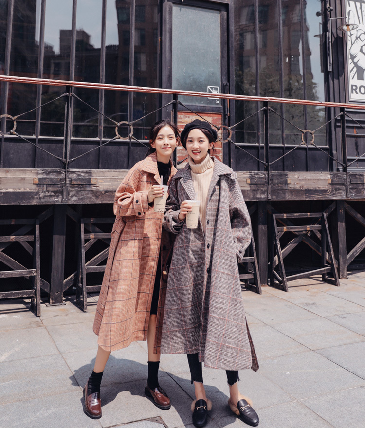 羽織るだけで一気に旬顔コーデに仕上がるロング丈チェック柄コートです♪
