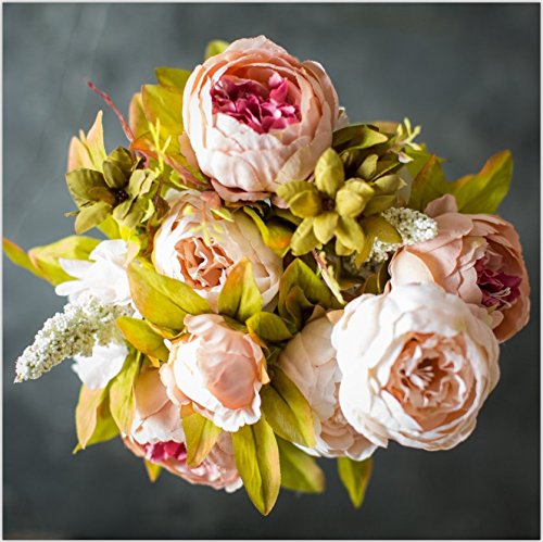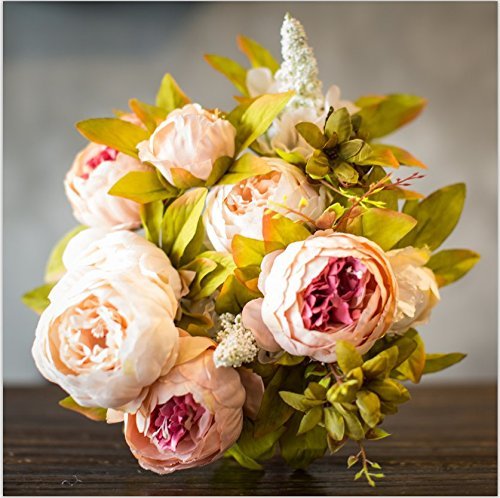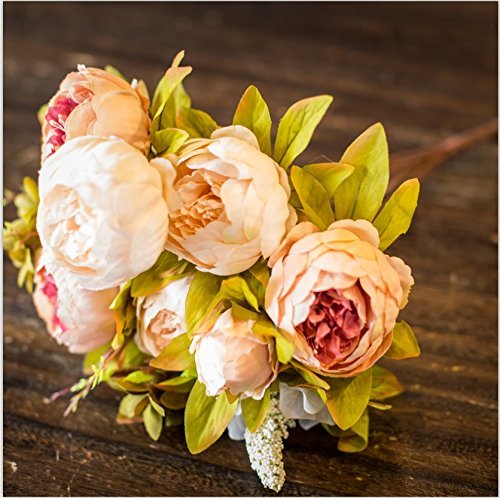 Zhuo Rui Artificial Real Touch Silk Penoy Bouquets Wedding Table Decoration. (champagne)