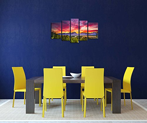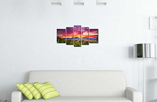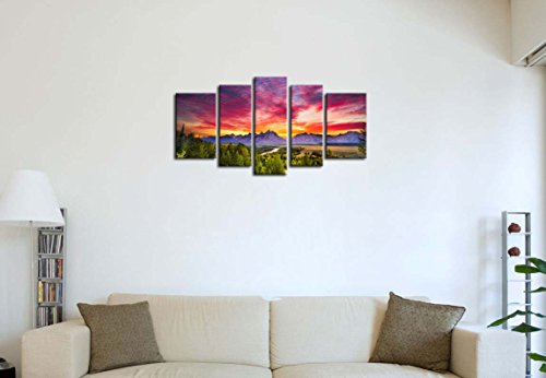 -. Title : 5 Pieces Modern Canvas Painting Wall Art The Picture For Home Decoration Summer Colorful Sunset Snake River Grand Teton National Park Landscape Mountain P.R.Int On Canvas Giclee Artwork For Wall Decor