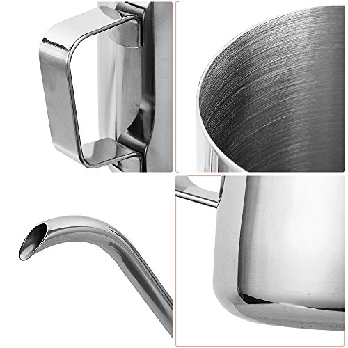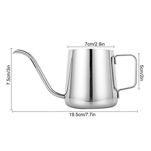 A good pot may not be a pot, but a good pot can make a good pot of coffee or tea.The best tool for you to make a perfect coffee or tea. Features: Material: 304 Stainless Steel Spout Diameter: 4mm Surface: Scratch-proof polishing surface 1.4CM wide handle easy to grip 0