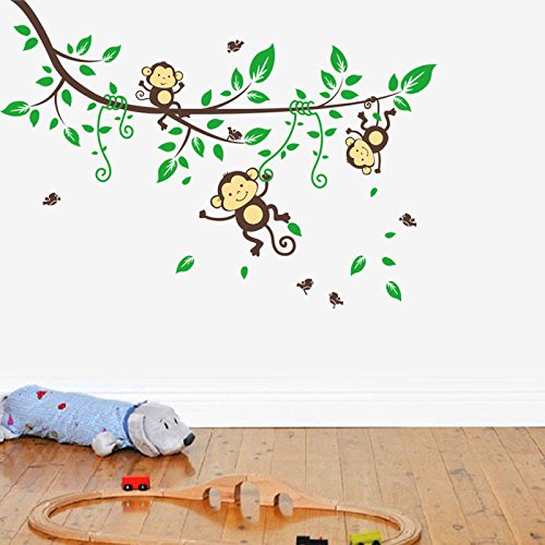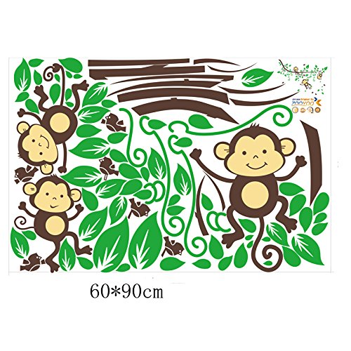 -. Title : Monkeys Birds Forest Wall Decal PVC Home Sticker House Vinyl Paper Decoration WallPaper Living Room Bedroom Kitchen Art Picture DIY Murals Girls Boys kids Nursery Baby Playroom Decor