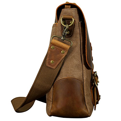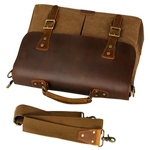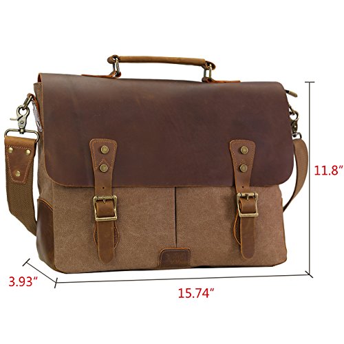 -. Title : WOWBOX Messenger Satchel bag for men and women Vintage canvas real leather 14-inch Laptop Briefcase for everyday use 13"(L)x10.5"(H) x 4.1"(W)