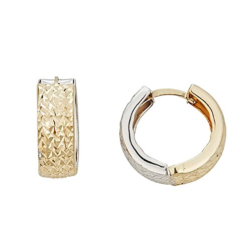 14K Two-Tone Gold Reversible Diamond Cut 5.80x15.00mm Huggie Earring