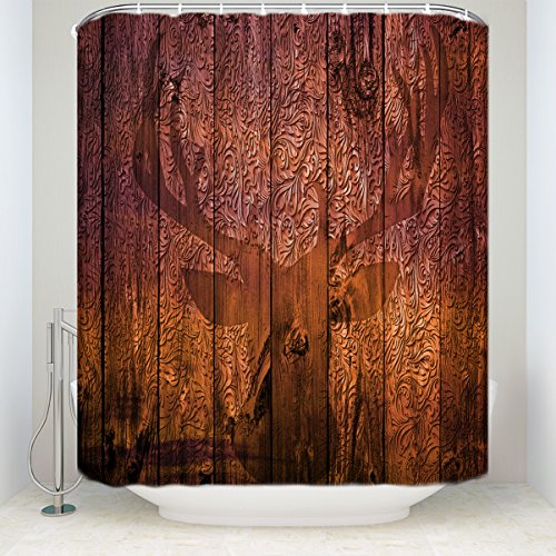 Deer Skull with Horns on Wooden Wall Panel Hunting Interior Decorating Picture, Polyester Fabric Bathroom Shower Curtain 60X72 inches