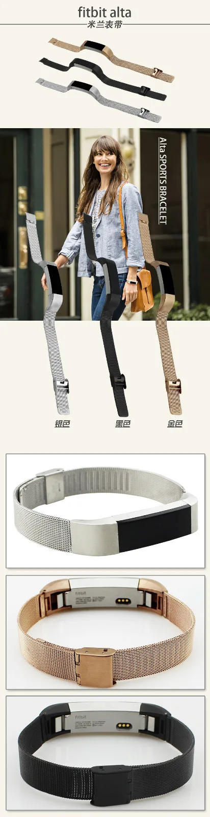 상품 내용 새로운 도착 3 색 정품 메쉬 스테인레스 스틸 팔찌 시계 밴드 스트랩 핏 비트 알타 추적기 팔찌 높은 품질 특징: