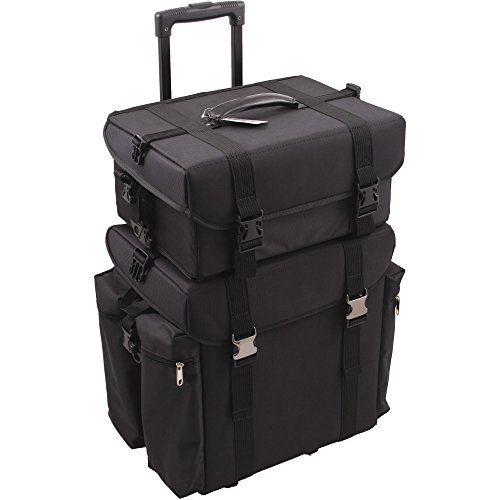 Sunrise Justcase T5272 2-in-1 Professional Soft Sided Hair Stylist Rolling Makeup Cosmetic Case, Black Nylon