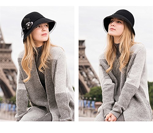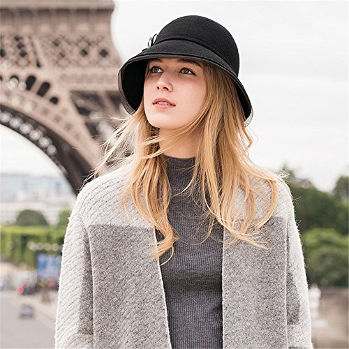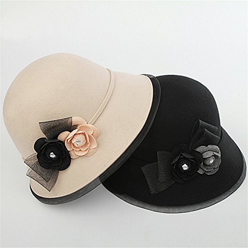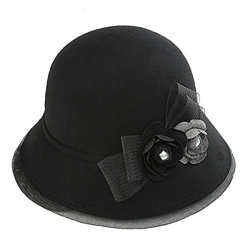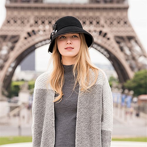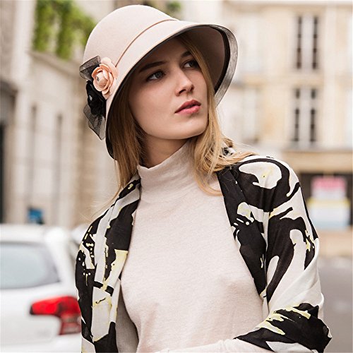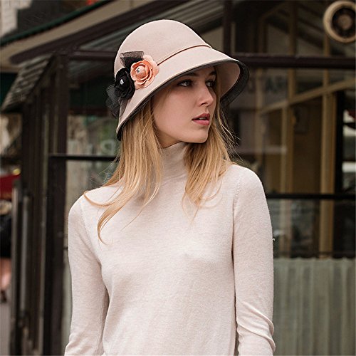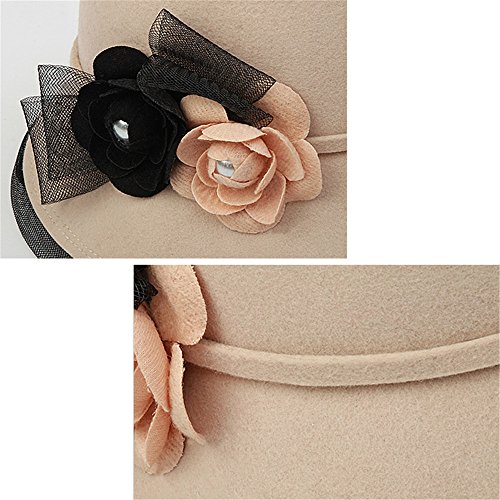 Cloche Dressy Hat Girl Lady Vintage Elegant Flower Autumn Winter Wool Felt Cap