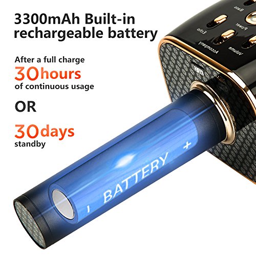 【3300mAh Built-in Rechargeable Battery】 After a full charge,30 hours of continuous usage (at normal volume)or 30 days standby. Whatever at home or outdoors, do not worry about the battery is not enough, You can sing anytime, anywhere. 【multiprotect safety battery】keep you and your devices safely with surge protection, short circuit prevention and more advanced safety features