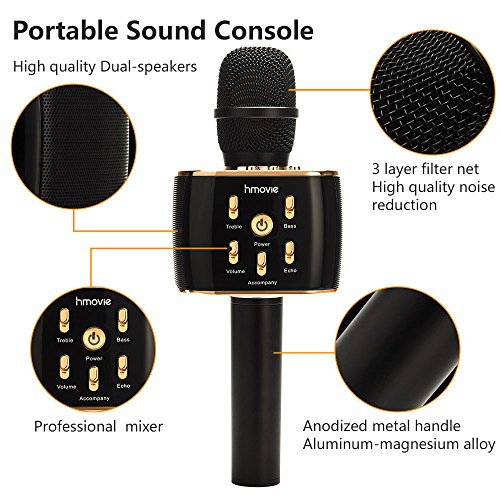 【Two way Connection】 3.5mm audio jack and Bluetooth Connection, it can connect with Android, ios phone,iPad, tablet,ect.. Once turn on the singing software on your phone or on your computer,it will produce excellent sound quality with reverberation.