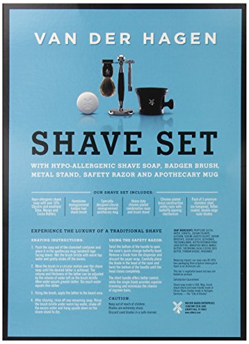 -. Title : Van Der Hagen Luxe Shave Set with Stainless Razor, Stand, Deluxe Brush, Mug and Soap