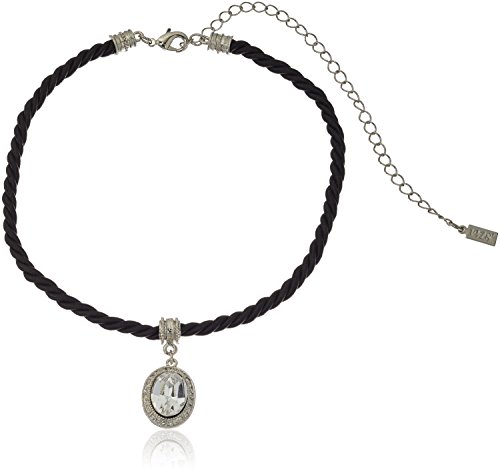Black chocker pendant necklace featuring oval-shape faceted crystal stone