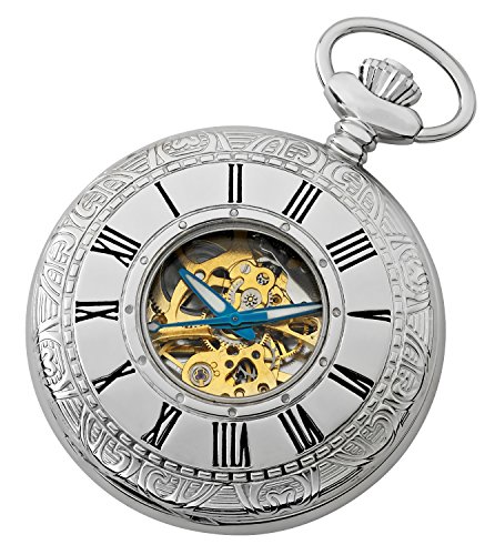 -. Binding : Watch -. Brand : Gotham -. Department : Mens -. Feature : Classic and elegant silver-tone Roman numeral design exhibition covered pocket watch / Intricately designed front cover opens to expose beautiful silver Roman numeral dial with gold tone exhibition center to display movement and it's moving parts / Rich antique style blue cobalt hour, minute and seconds hands plus scratch resistant mineral crystal / Includes matching 15" curb pocket watch chain with spring ring attachment plus solid brass desk top stand / Arrives in beautiful presentation box with Selvyt polishing cloth, lifetime limited warranty and operating instructions -. Label : Gotham -. Manufacturer : Gotham -. Model : GWC14036SG-ST -. MPN : GWC14036SG-ST -. PackageQuantity : 1 -. PartNumber : GWC14036SG-ST -. ProductGroup : Watch -. ProductTypeName : WATCH -. Publisher : Gotham -. Studio : Gotham -. Title : Gotham Men's Silver-Tone Mechanical Pocket Watch with Desktop Stand # GWC14036SG-ST