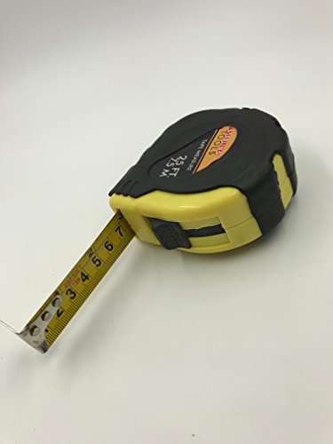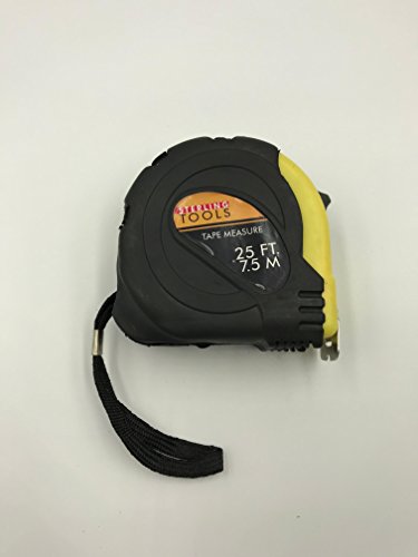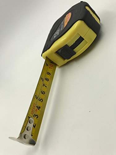 This Industrial Tape Measure features a durable black and high visibility yellow case with a self-retractable blade inside that reaches up to 25 feet and a convenient metal belt clip