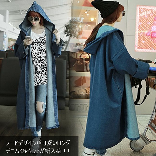 | 商品名 | デニムジャケット デニムコート ロングコート レディース ライトアウター フード付き パーカー マキシ丈 デニムアウター ロングジャケット 2017秋冬新作 |
