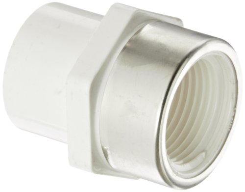 -. Feature : Reducing adapter for connecting pipes or fittings of different diameters and end types / Socket connection on one end and steel-reinforced female NPT threads on the other for connecting two pipes with different ends / PVC for corrosion resistance, high strength, and less weight than fittings made from metal / Stainless steel collar for PVC thread reinforcement / Meets NSF/ANSI 61 Annex G, NSF/ANSI 372 for quality assurance