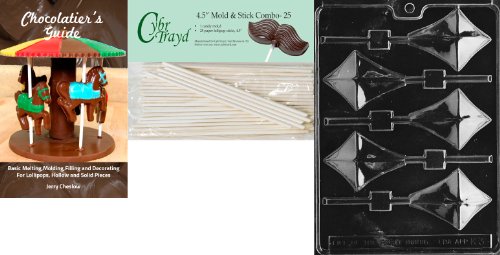 Cybrtrayd 'Kite Lolly' Kids Chocolate Candy Mold with 25 4.5-Inch Lollipop Sticks and Chocolatier's Guide