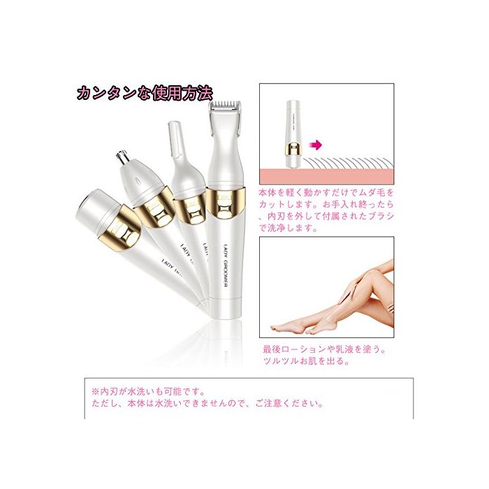 【4인1다기능】비모커터,눈썹 커터,갈기 커터,쉐이버,4개의 기능이 어느(있는) 전지식의 전동비 모커터입니다.1대 4역할의 교환 헤드가 부착,저 소음형 (이므로)그래서 촉각뿐만 아니라 청각으로도 친절한 다기능으로 편리한4in1 레이디스 쉐이버입니다.