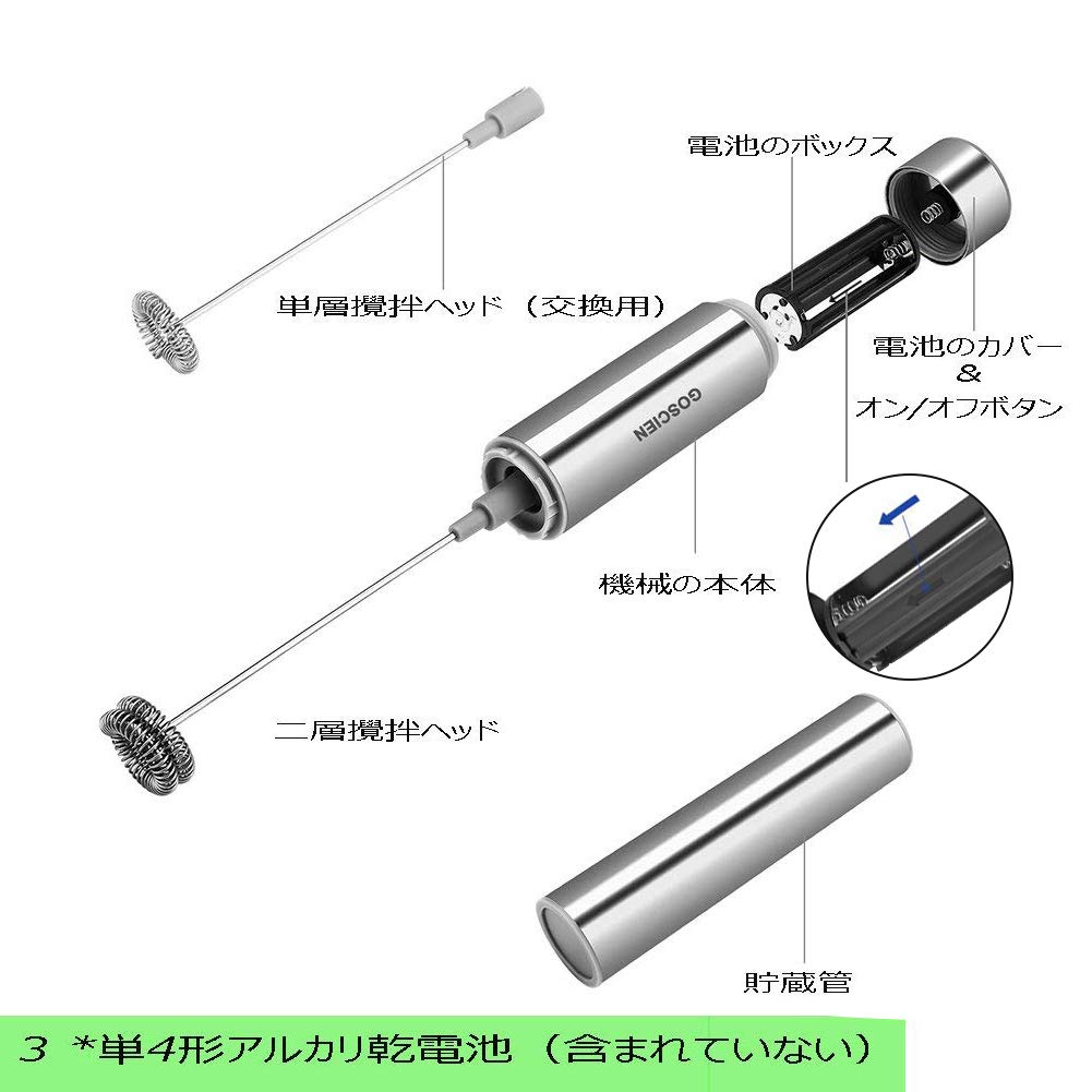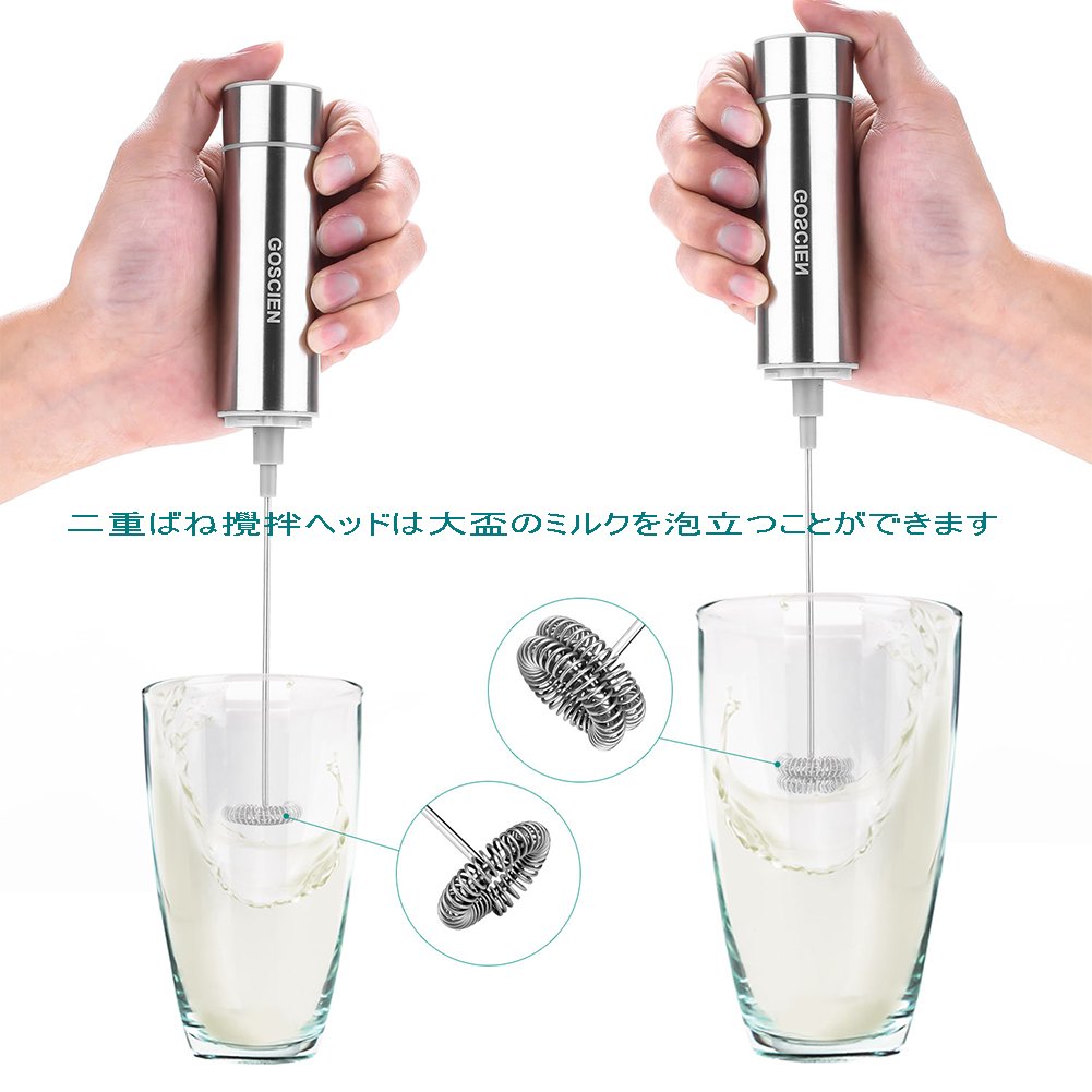 アップグレード設計:二重設計な攪拌ヘッドも付き、発泡には10秒しかかかりません、より強力で効率的に作業します、それにミルク泡を作成するだけでなく、カプチーノ、紅茶、卵、混合飲み物、冷たいとホットチョコレートにもできます。