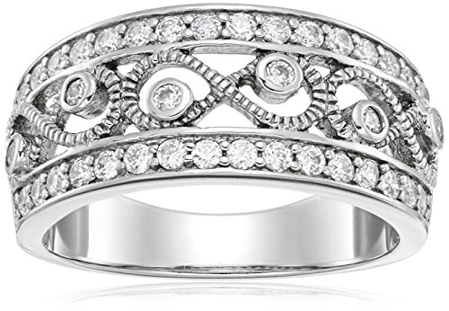 -. Title : Sterling Silver Swarovski Zirconia Filigree Ring, Size 7