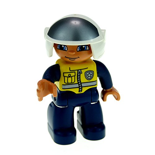 -. Title : 1 x L.E.G.O Duplo Figur Polizist Polizei Police gelb blau mit Motorrad Helm 47394 F32