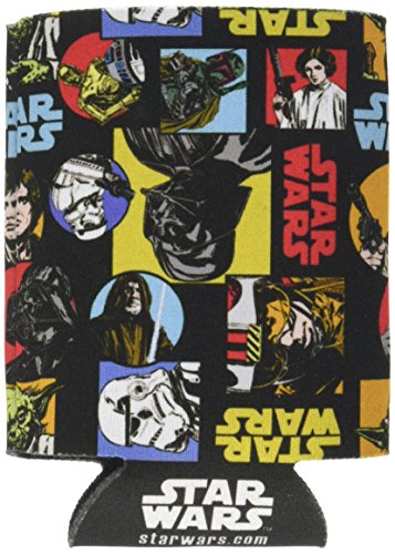 - Patterned can huggie featuring characters such as Luke, Leia, Han Solo, Yoda, Boba Fett, a Storm trooper and Vader