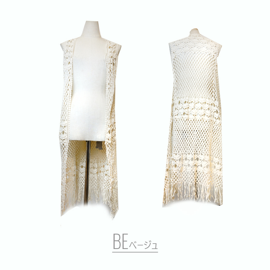 ◆涼しげ透かし編み♪クロシェロングジレ◆