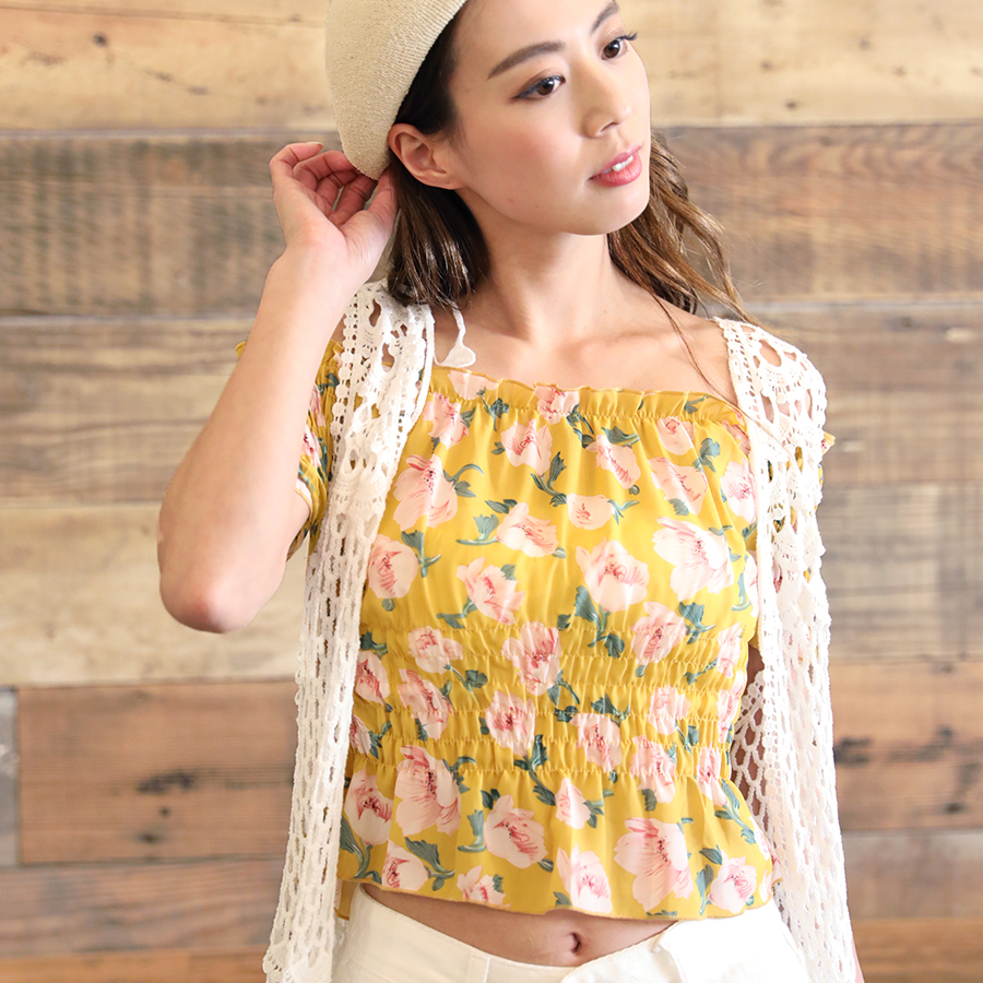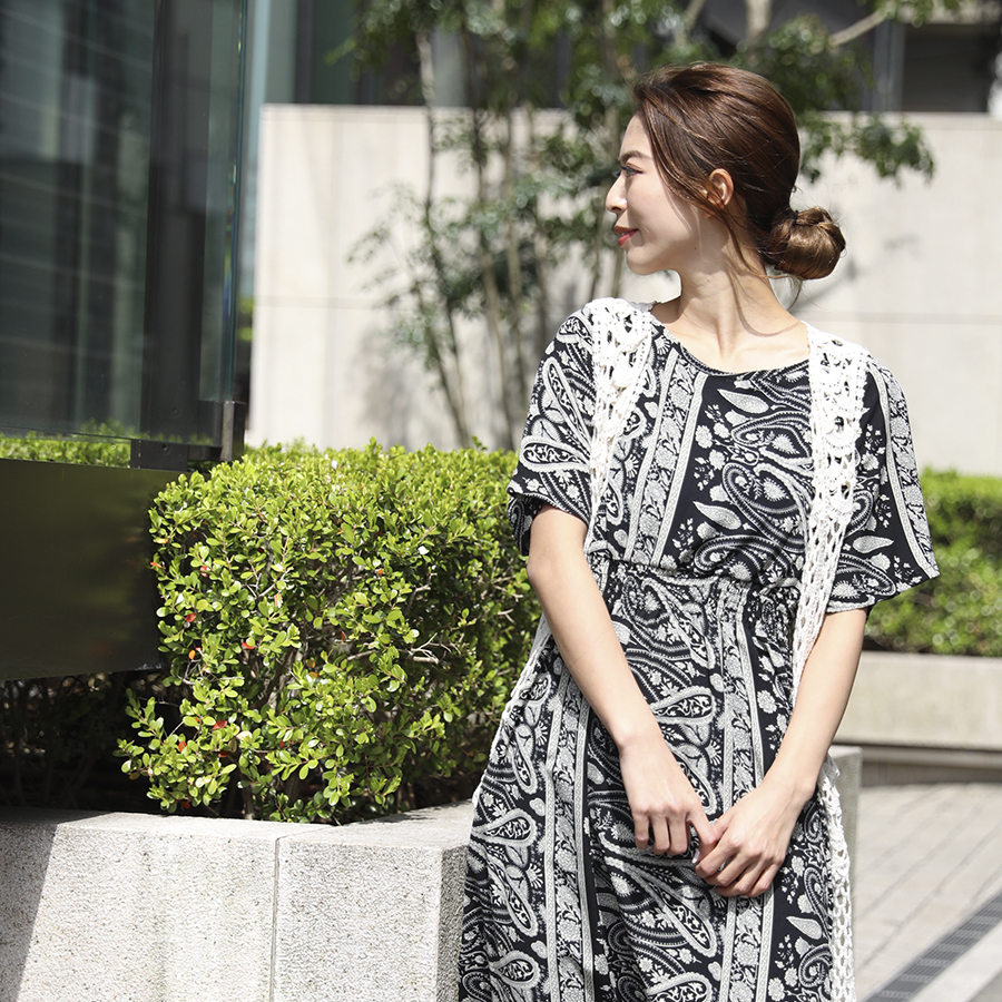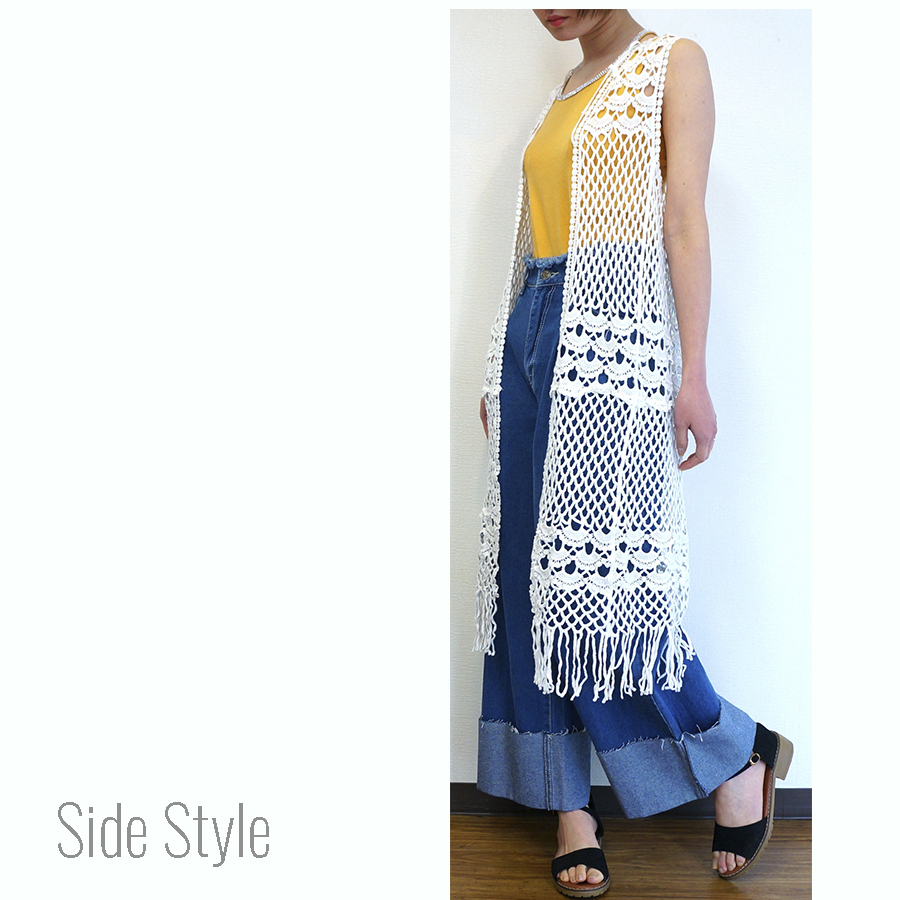 爽やかな印象の透かし編みロングジレ★