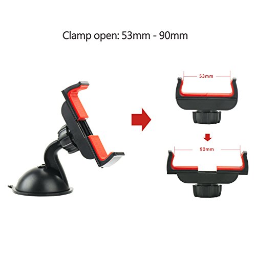 - UNIVERSAL COMPATIBILITY: The suction cup phone holder iphone 5 has a very big clamp, its open range is 53-90mm, fits for 4.0 - 6.0 inches smartphones, such as Samsung Galaxy S5 4 NOTE 2 3 4, iPhone 7 6 5S 5C 5, HTC ONE M7 8 9, DESIRE 820, even with cellphone cases.