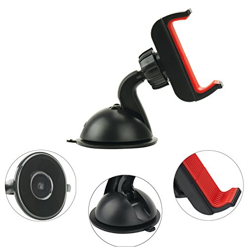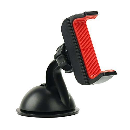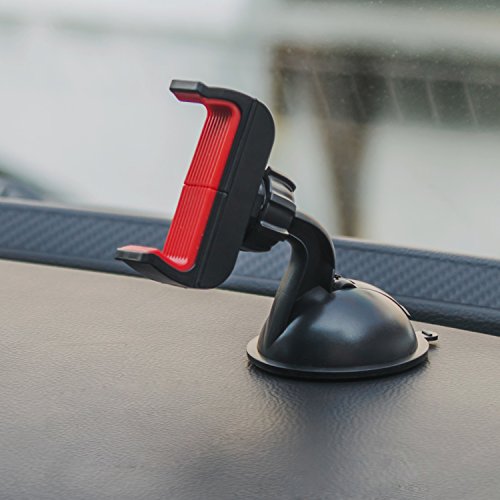 Ztechworld Universal Suction Cup Car Mount Cell Phone Holder for iPhone 7 Plus 6S 6/ Samsung Galaxy S7 S6 Edge Note 3 4 5/ Android Phones and More, Sticky Silicone Base, 360 Rotation, Red Clip
