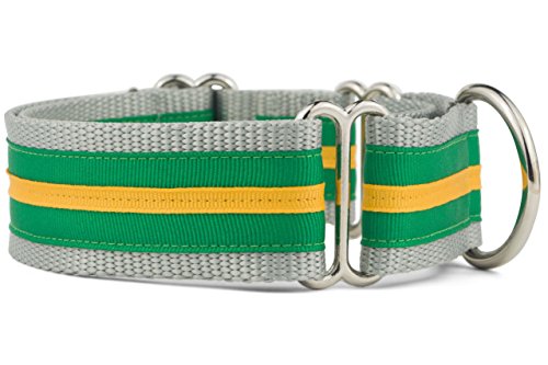 Studio : If It Barks Publisher : If It Barks Binding : Misc. Product Description If It Barks martingale dog collars, also known as limited slip collars, are highly recommended by dog trainers over your standard buckle collar or less humane choke chains. Benefits of Martingale Collars: - Dog with small heads and big necks are not able to back out of the collar like traditional buckle style collars. - Martingales provide better control while walking your dog by applying even pressure around their neck. This reduces injury and choking. - The collar is constructed with two loops of webbing. One wraps around your dog's neck and the other is used to control the amount of closure of the collar when your dog begins to pull. How you adjust the collar determines the allowable closure. Features: - Perfected since 2002, this design uses standard heavyweight nylon webbing. - Collar is decorated with durable polyester grosgrain ribbon that is easy to clean. - All hardware is durable metal for years of use. - Backed by the If It Barks warranty that if the stitching or hardware fails with regular wear, we'll replace it. - Handmade in North Carolina. - 1.5" inches (3.8 cm) wide in sizes small (11" - 15")(28 - 38cm), medium (15" - 22")(38 - 56cm) and large (19" - 30")(48 - 76cm) Measure Your Dog: Loosely measure the neck where the collar would normally sit sliding two fingers between the dog's neck and measuring tape. Measure the widest part of your dog's head. Order a collar that will fall within the range of these measurements. Care Instructions: If It Barks collars are machine washable. We suggest placing the collar in a pillowcase or lingerie bag to protect metal hardware. Line dry. 0