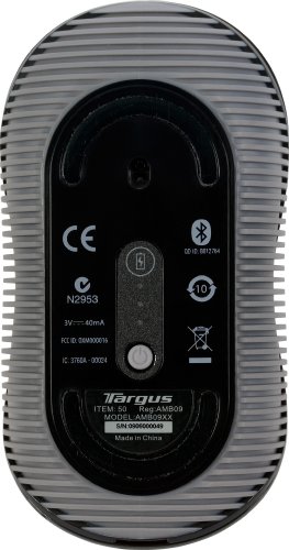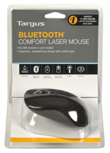 -. Binding : Personal Computers -. Brand : Targus -. Color : Black/Gray -. Department : Keyboards/Input Devices -. EAN : 0151903010235 -. Feature : Mouse functions via Bluetooth connection, no USB cable or receiver required / Large enough for comfortable desktop use, yet small enough for the mobile user / Ergonomic shape provides support to help prevent palm strain; designed for left and right handed users / PC, Mac and Netbook compatible -. HardwarePlatform : PC -. IsAutographed : 0 -. IsMemorabilia : 0 -. Label : Targus -. Manufacturer : Targus -. Model : AMB09US -. MPN : AMB09US -. NumberOfItems : 1 -. PackageQuantity : 1 -. PartNumber : AMB09US -. ProductGroup : Personal Computer -. ProductTypeName : COMPUTER_INPUT_DEVICE -. Publisher : Targus -. Studio : Targus -. Title : Targus Bluetooth Comfort Laser Mouse AMB09US (Black with Gray) -. UPC : 887189686870 -. Warranty : Limited One Year Warranty