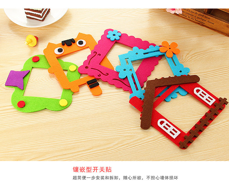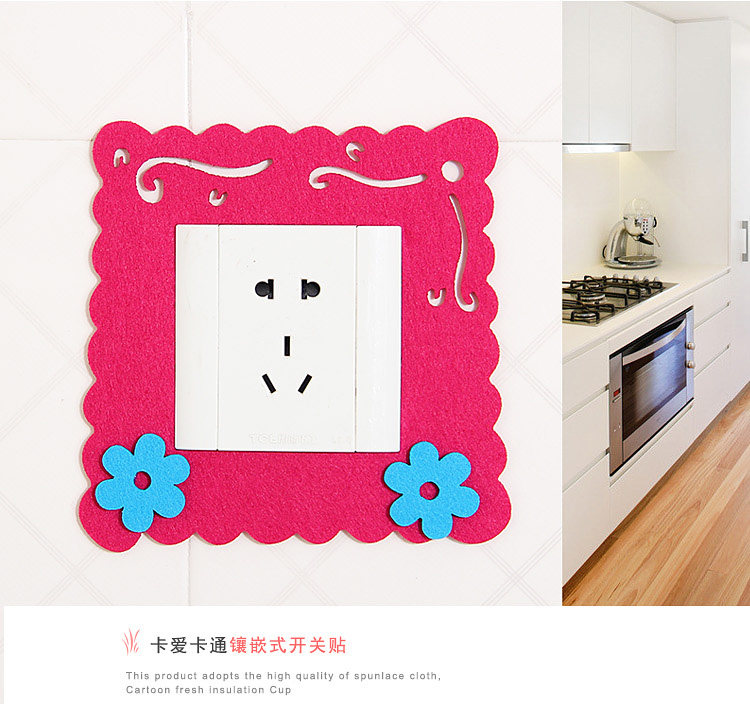 (1套8个)可爱卡通毛毡开关插座装饰贴 家居开关装饰套不伤墙免粘开关套
