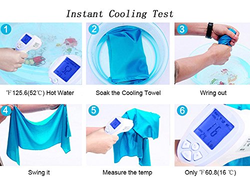 - ✔Instant Cooling When Wet- This towel quickly cools you down by just soaking, wringing the water out and snapping. The magical cooling effect can last up to several hours and easy to reactivate it by repeating the same steps. Whether it is dry or wet, can be washed with detergent in a washing machine.
