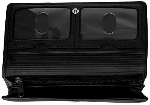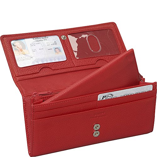 Studio : Buxton Publisher : Buxton Binding : Apparel Product Description Naturally milled cowhide with genuine leather interior roma expandable clutch features dopp® signature zipper pulls, full front flap closure, exterior slip pocket, interior zipper compartment with slip pocket, 2 interior i.D. Windows, 8 credit card slots, 2 interior sections and a removable checkbook holder. 0