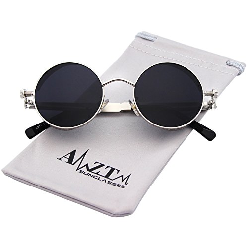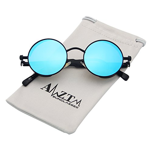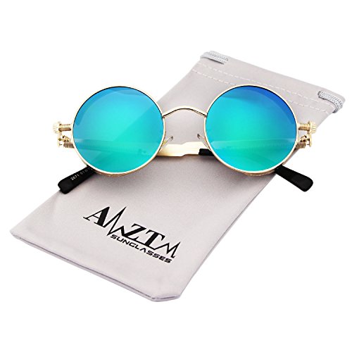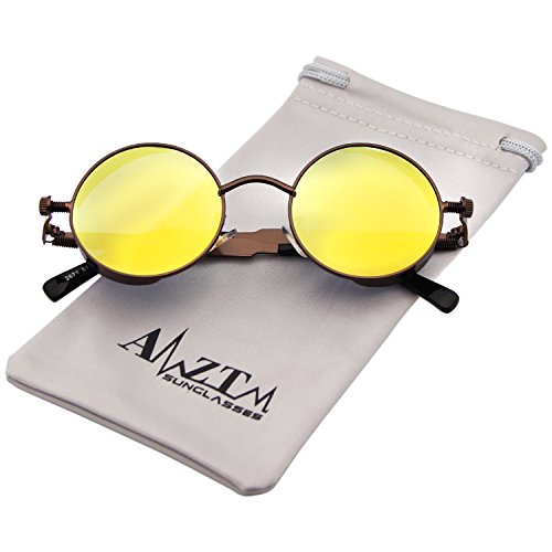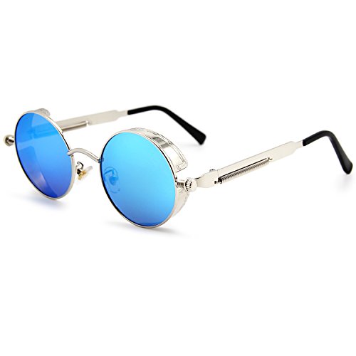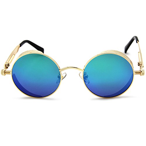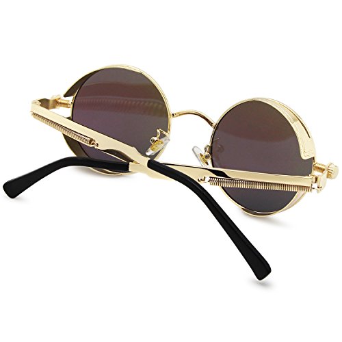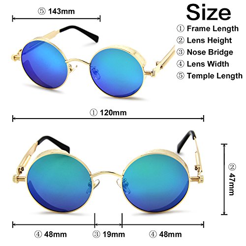Steampunk Style Colorful Mirrored Lens Metal Frame and Small Round Design Packing including 1 x Sunglasses 1 x Glasses Bag 1 x Box