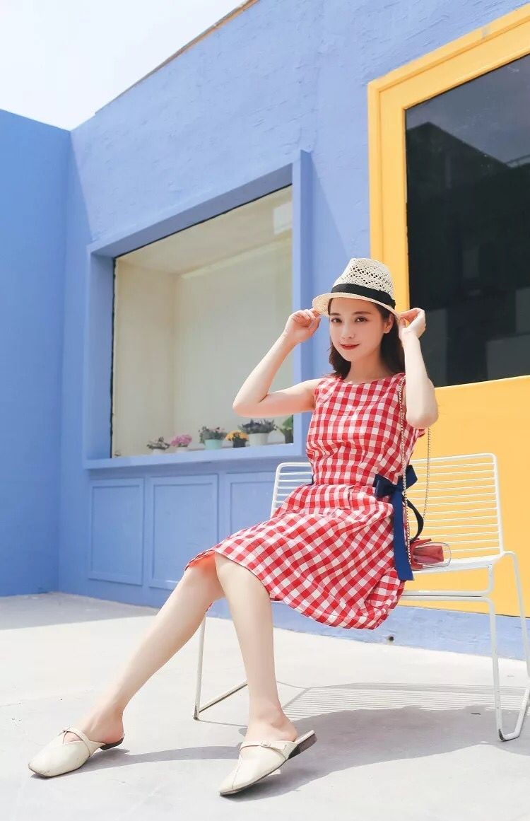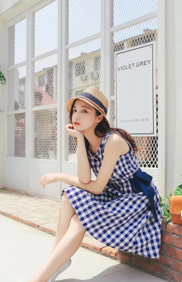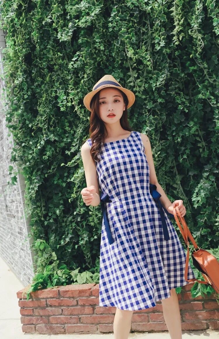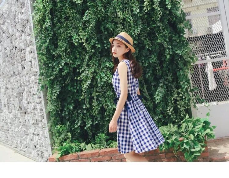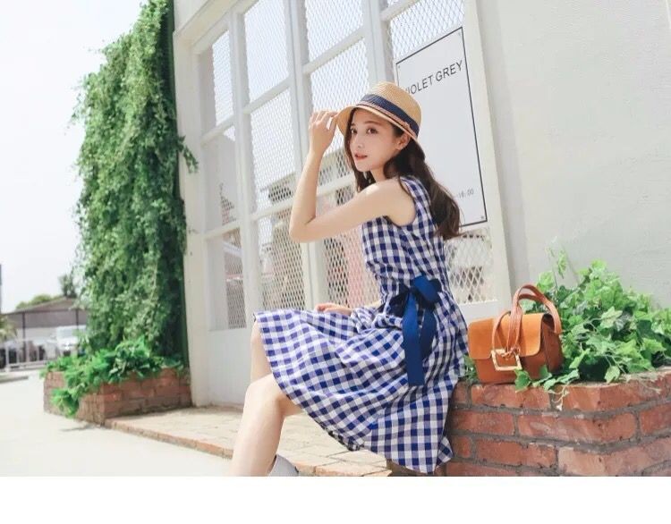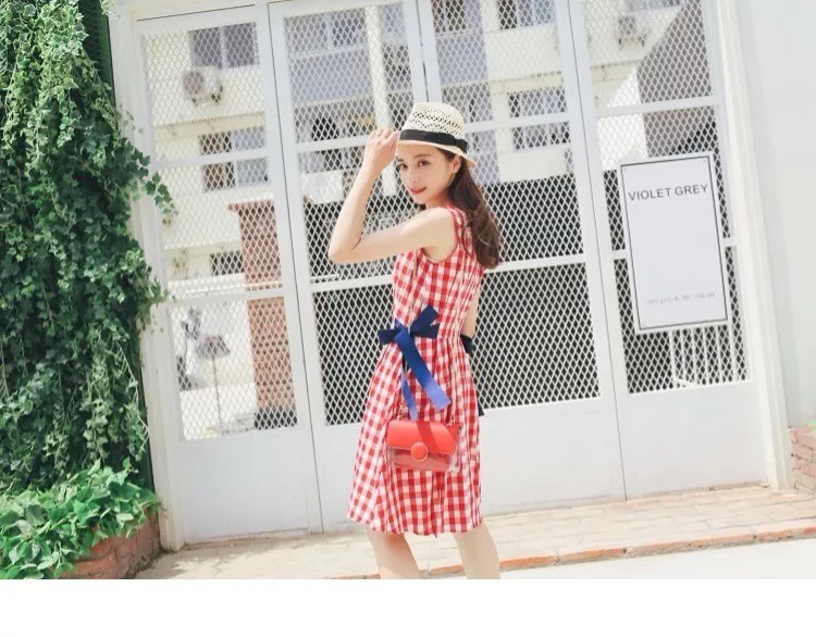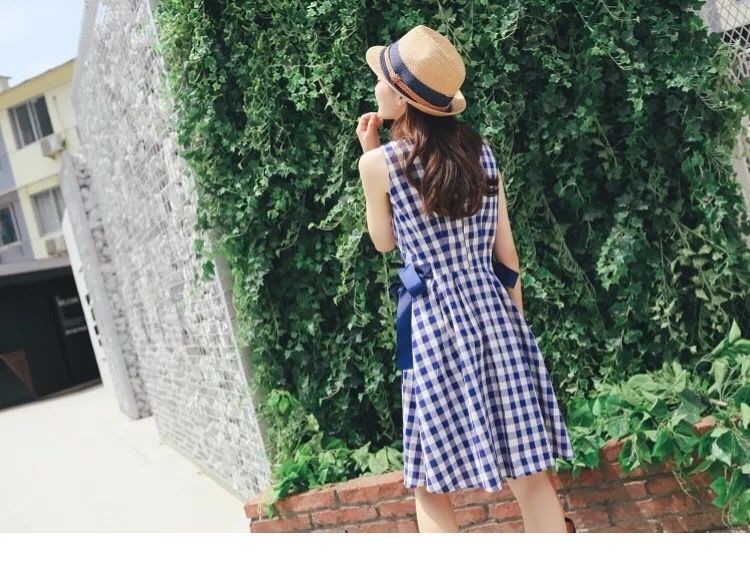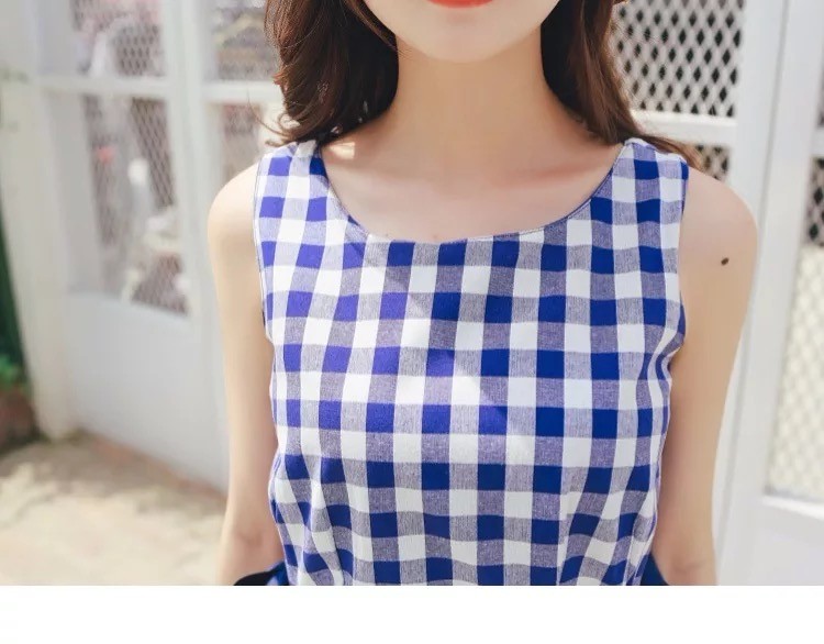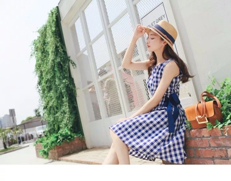 かわいい両サイドリボンのノースリーブギンガムチェック柄Aラインワンピースです。