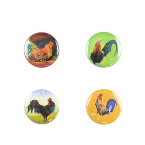 -. Feature : Set of 4-rooster themed magnetic wine and drink charms; a unique way to "mark your drink"; works with any glass / Features extra strong coated rare earth magnet, tin plated steel, recycled paper, mylar coating; packaging can be used for charm storage / Magnets are safe, won't come apart unless the outside charm is removed; won't affect the taste of the beverage / To use: drop magnet in glass, hold charm to outside of glass or base until two magnets attract, slide to desired position, pour beverage / Wipe clean with damp cloth; do not soak in water; made and assembled in USA