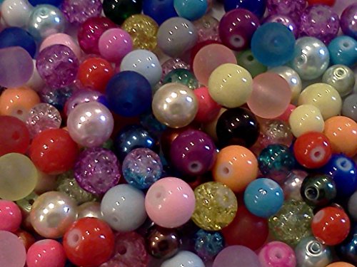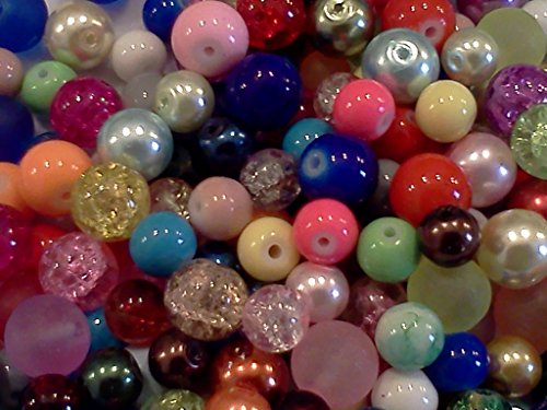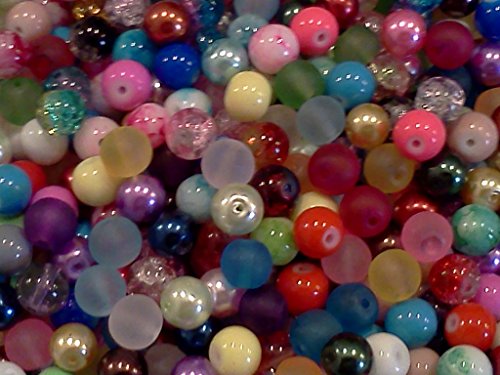 Half-pound Round Glass Beads, Assorted Colors, 6-10mm, Bulk Lot