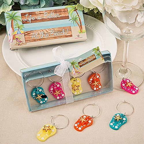 -. Brand : Fashioncraft -. Color : Multi-colored -. EAN : 0638054017264 -. Feature : Set of 2 sets flip flop wine glass tags / Crafted from a rubberized material, they are made in the shape of a flip flop in bold bright colors, of yellow, orange, teal blue and hot pink / Each measures 2" x 1" / Beach theme packaging with clear top and sandy beach stage design Back of box has message 'Life is Better' and 'At the Beach!' -. Label : Fashioncraft -. Manufacturer : Fashioncraft -. Model : 1726 -. MPN : 1726 -. PackageQuantity : 2 -. PartNumber : 1726 -. ProductGroup : Kitchen -. ProductTypeName : KITCHEN -. Publisher : Fashioncraft -. Studio : Fashioncraft -. Title : Colorful Beach Themed Flip Flop Wine Charms (Two Sets) -. UPC : 638054017264