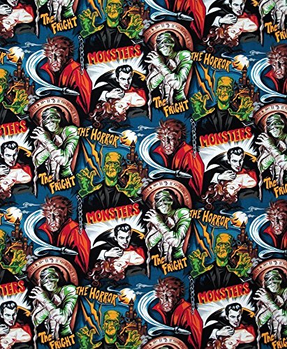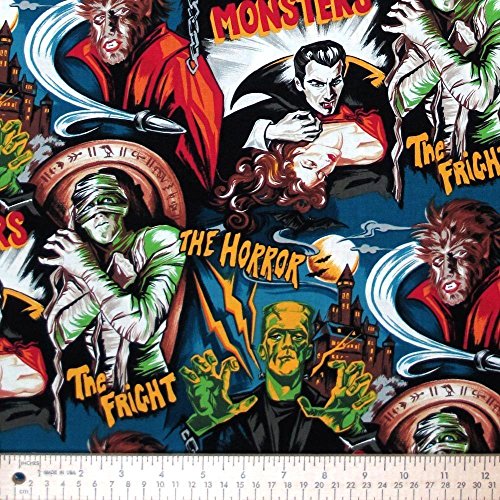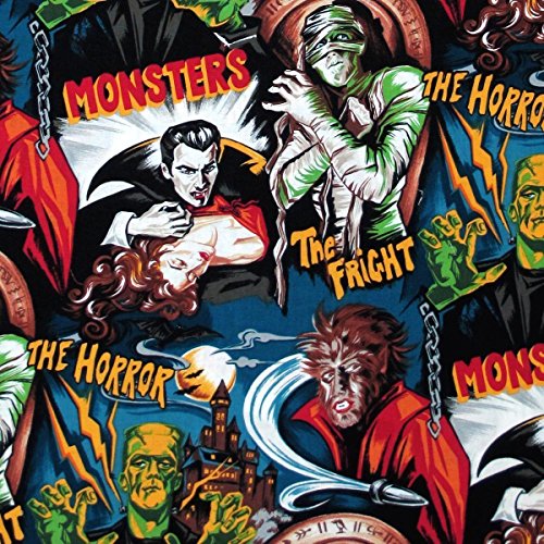 Robert Kaufman Horror Movie Monsters Midnight, 44-inch (112cm) Wide Cotton Fabric Yardage