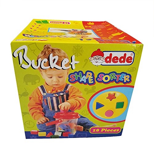 Includes bucket and 16 colored shaped toys. Product dimension 6 X 6 X 6 inches. Each parts dimensions 1 X 1 X 1.5 inches